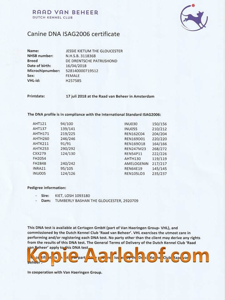Fokkerij gegevens Jessie (NHSB 3118368)