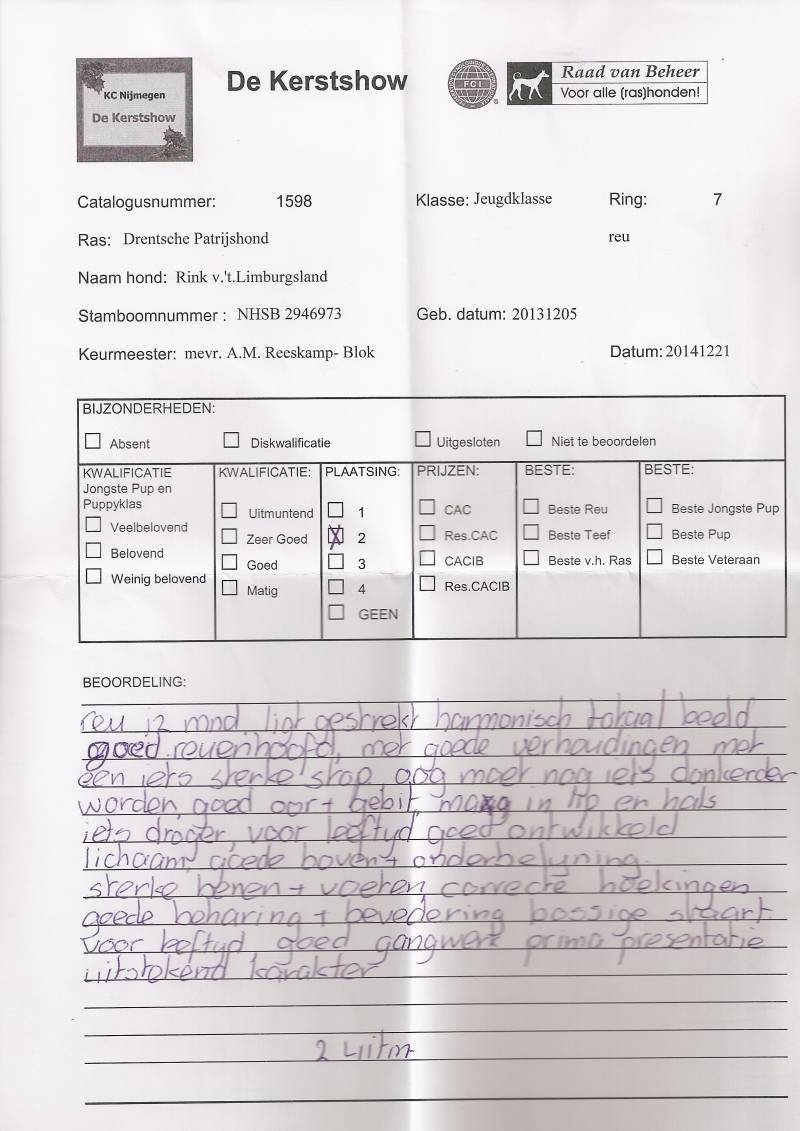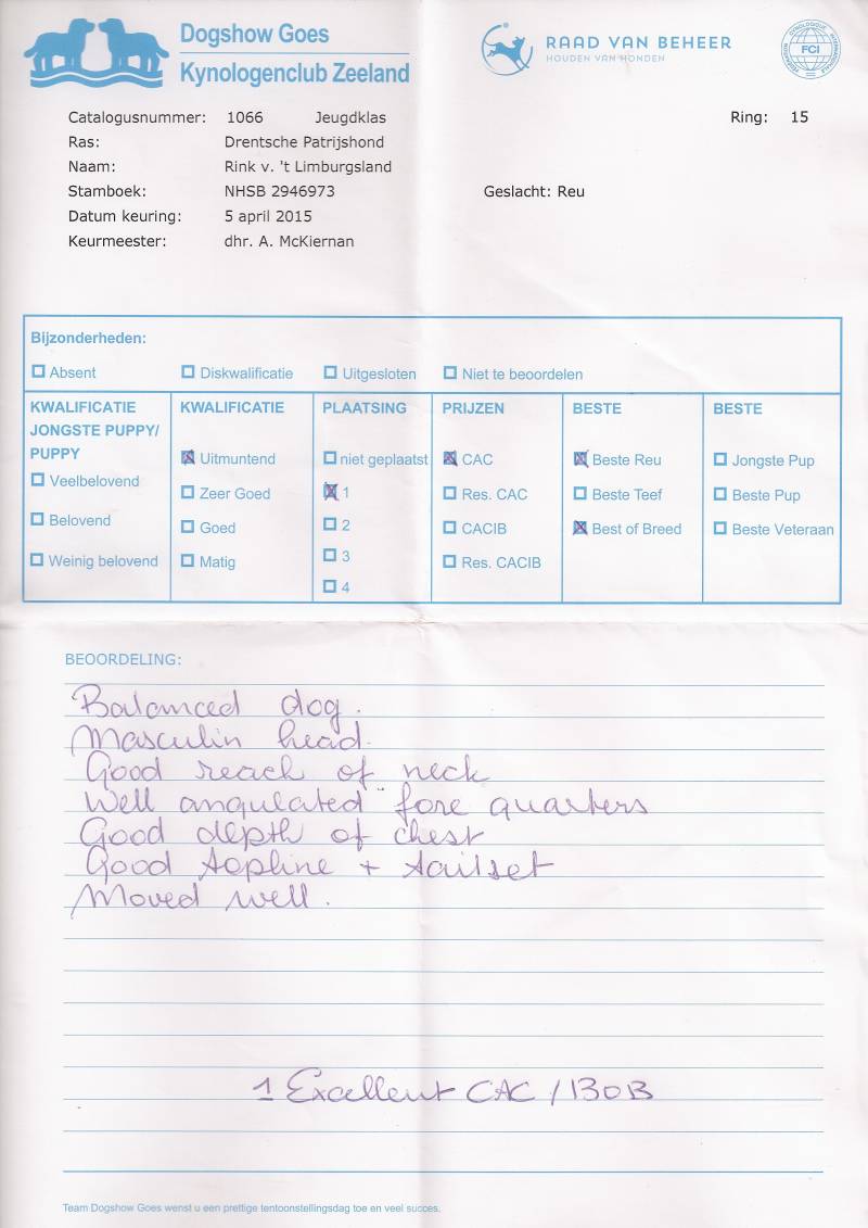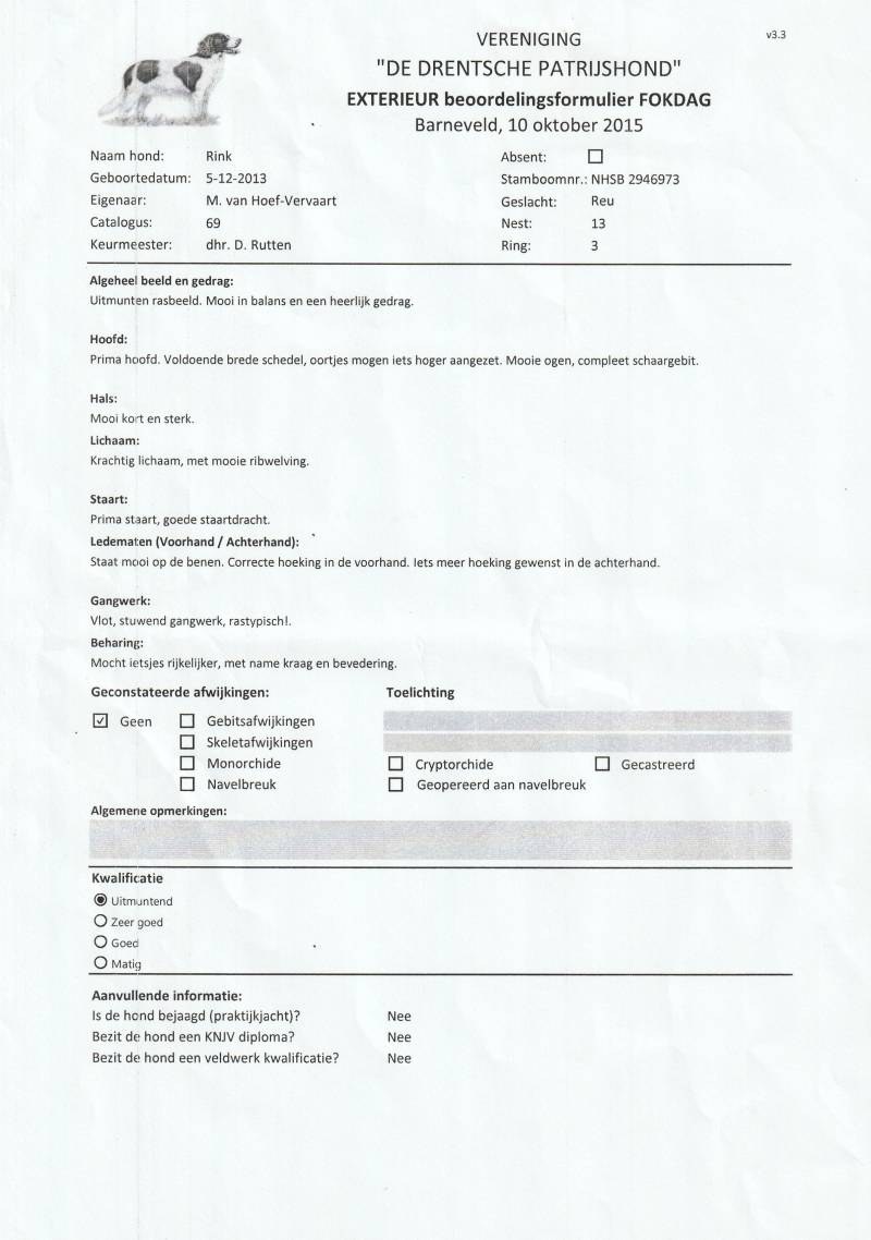 Onderstaand het Keuringsrapport van de Reuendag in Dieren. We zijn superblij met dit rapport van onze Rink (21 maanden).